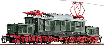 Popis   elektrická lokomotiva zelená s šedou střechou a červenými pantografy a podvozky