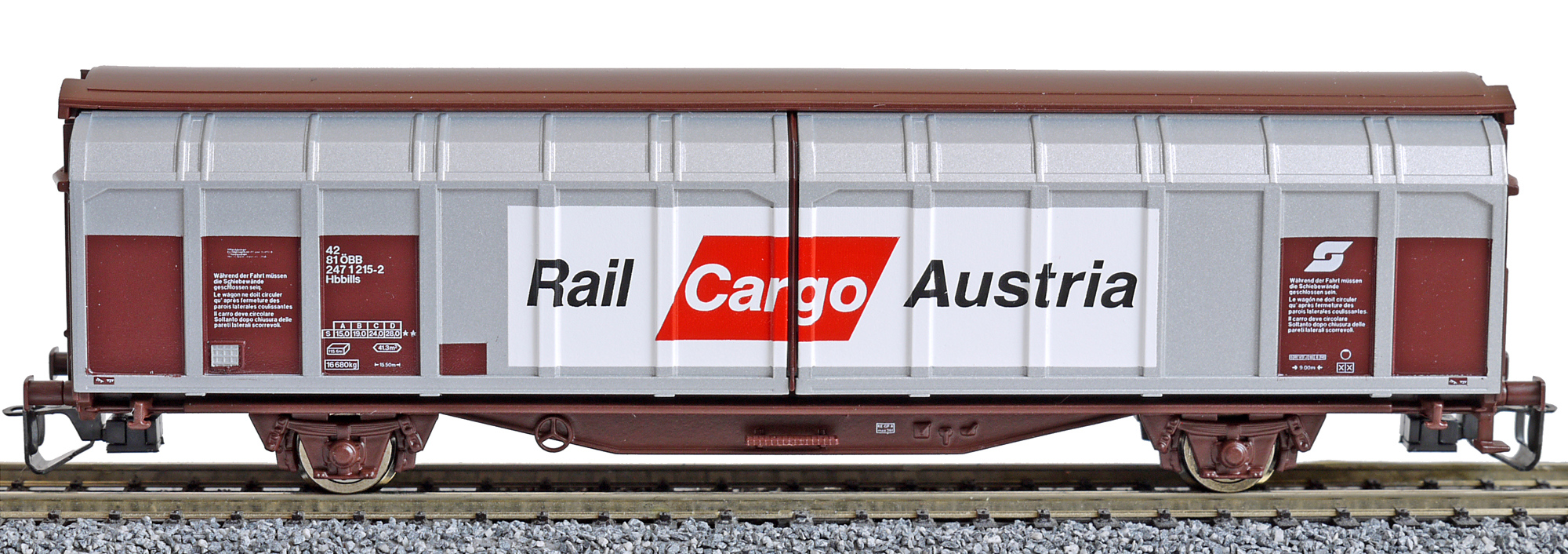 | červenohnědý Hbbills se stříbrnými bočnicemi "Rail Cargo Austria" |
