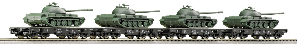 | set čtyř plošinových vozů s nákladem tanků T55 |