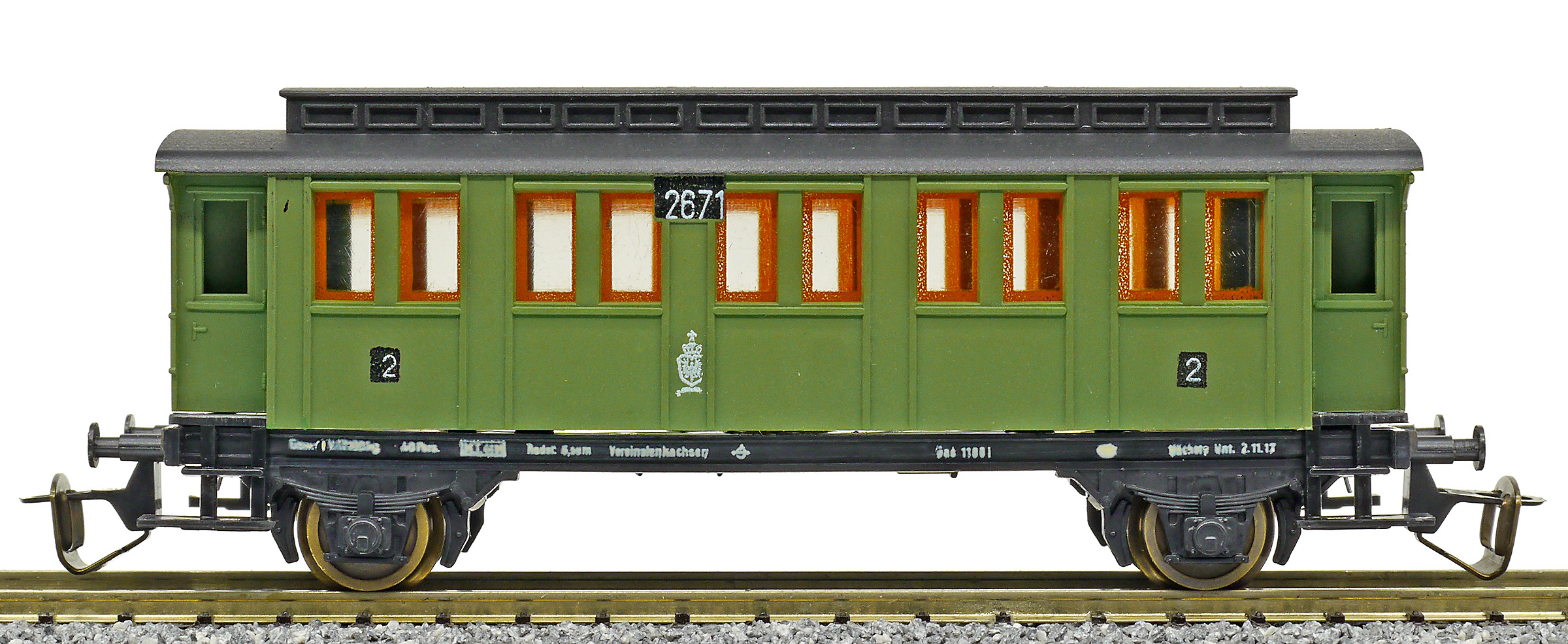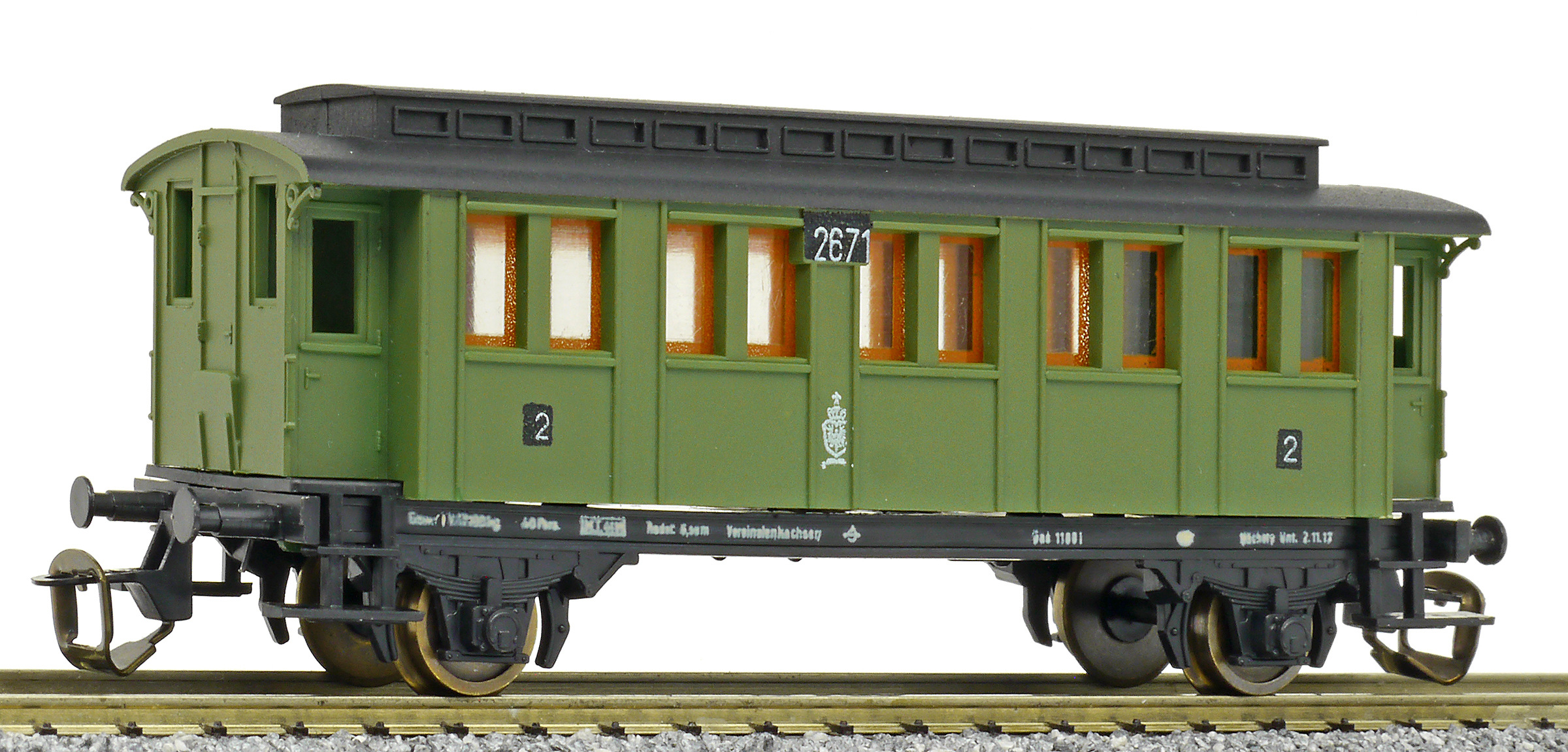 osobní vůz zelený s černou střechou 2. tř.