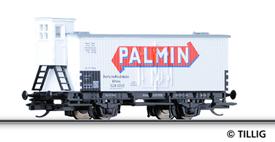 | bílý s šedou střechou a brzdařskou budkou "PALMIN" |
