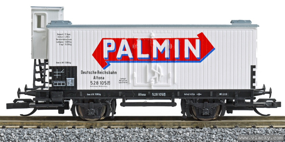 | bílý s šedou střechou a brzdařskou budkou "PALMIN" |