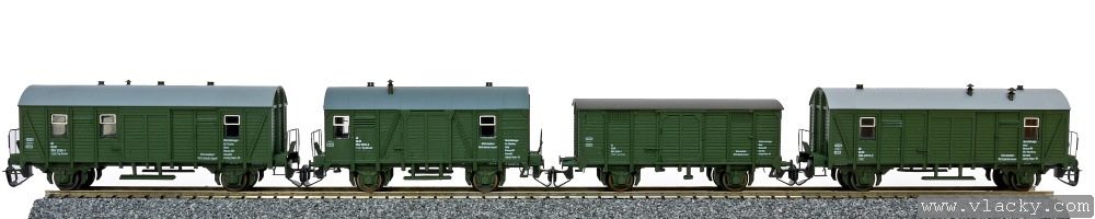 | set čtyř zelených vozů pracovního vlaku |