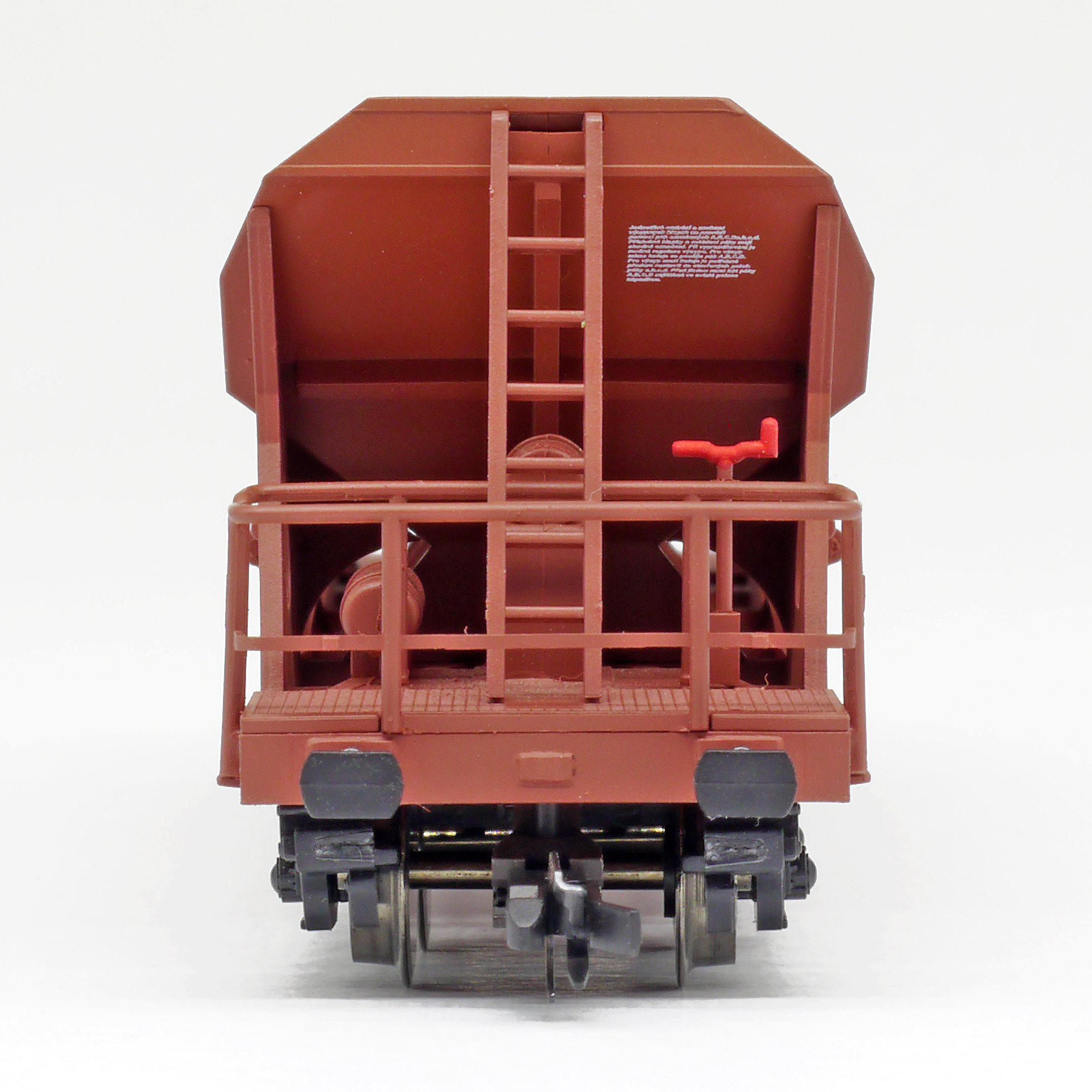 | nákladní samovýsypný vůz červenohnědý s černými podvozky |