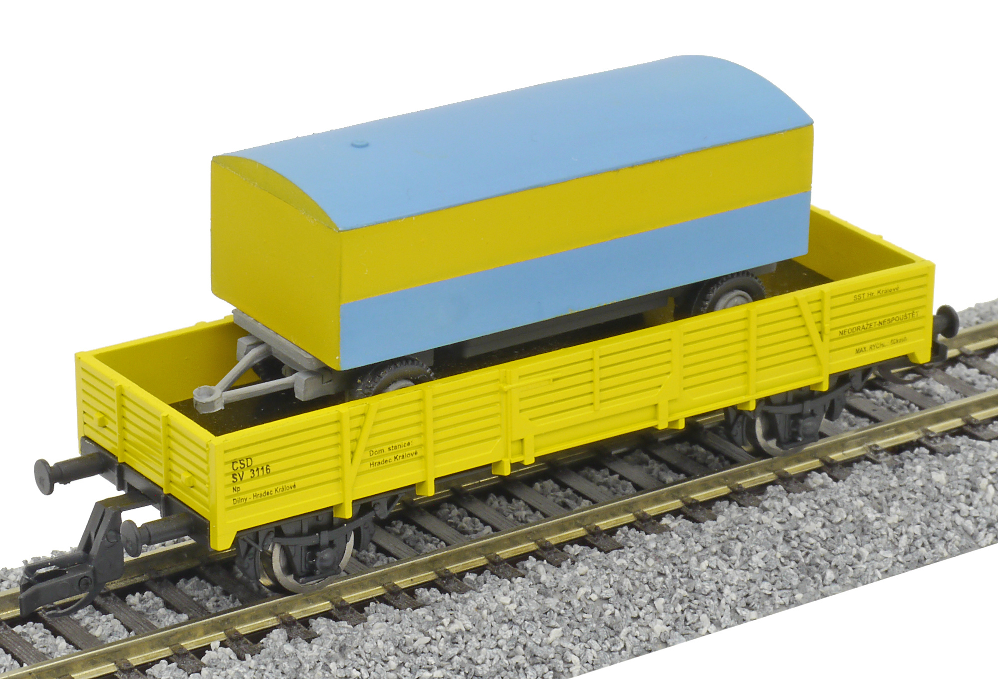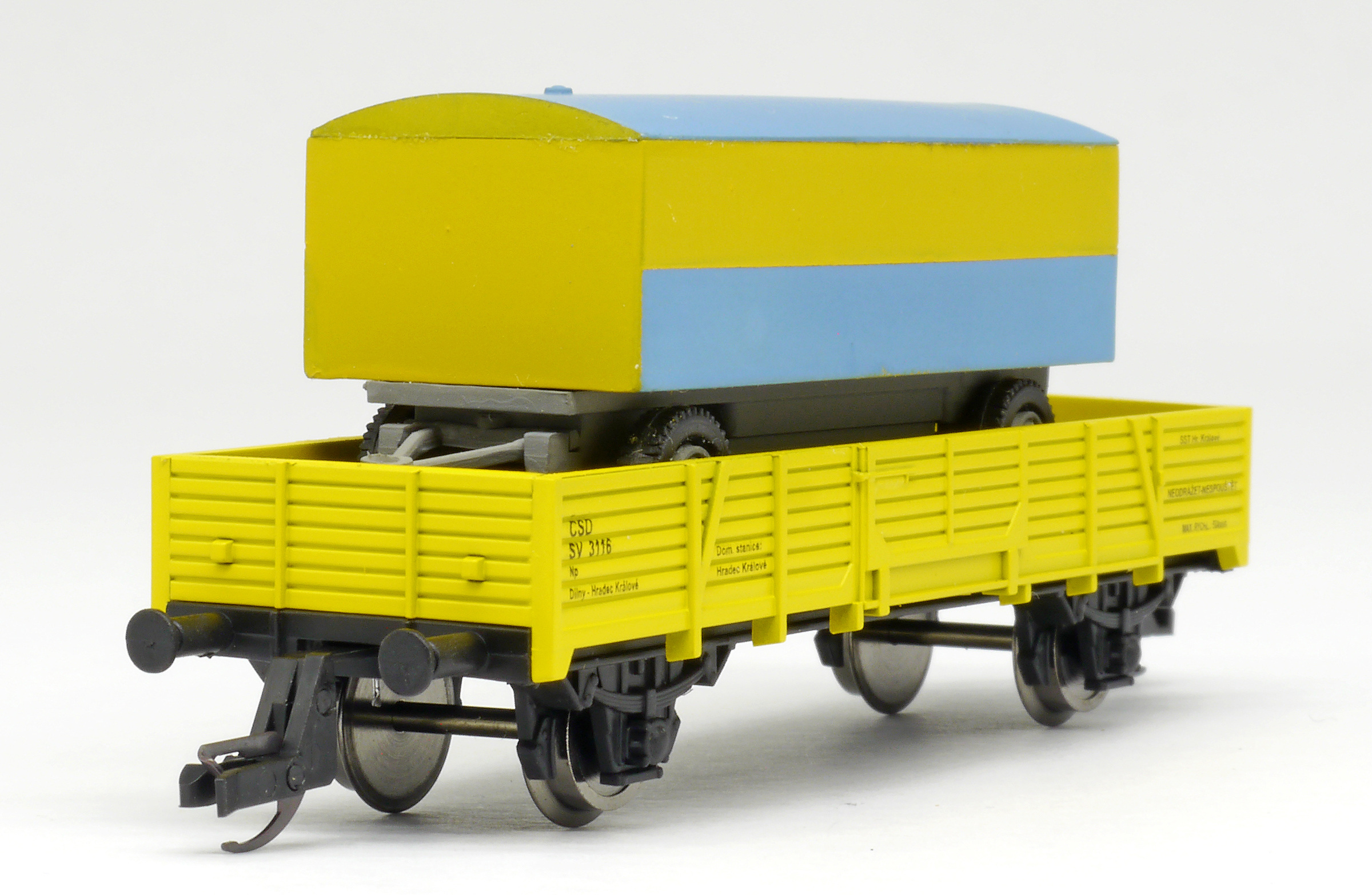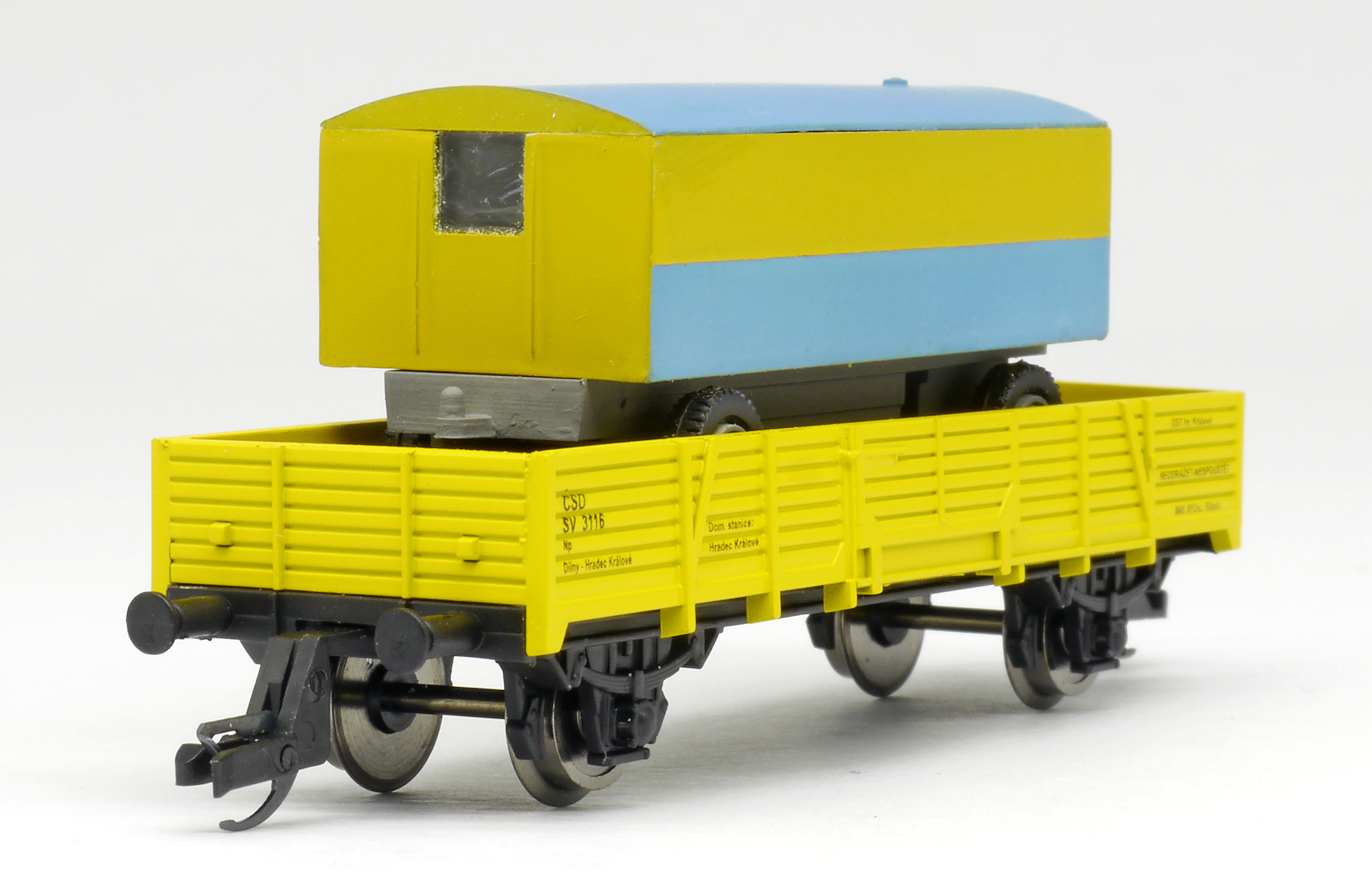 měřítko 1:120 - rozchod kolejí 12 mm nenormované uchycení spřáhla 116 mm - celková délka modelu přes nárazníky
