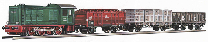set dieselové lokomotivy V 36 a tří nákladních vozů