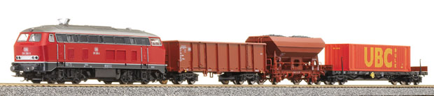 set dieselové lokomotivy BR 218 a tří nákladních vozů