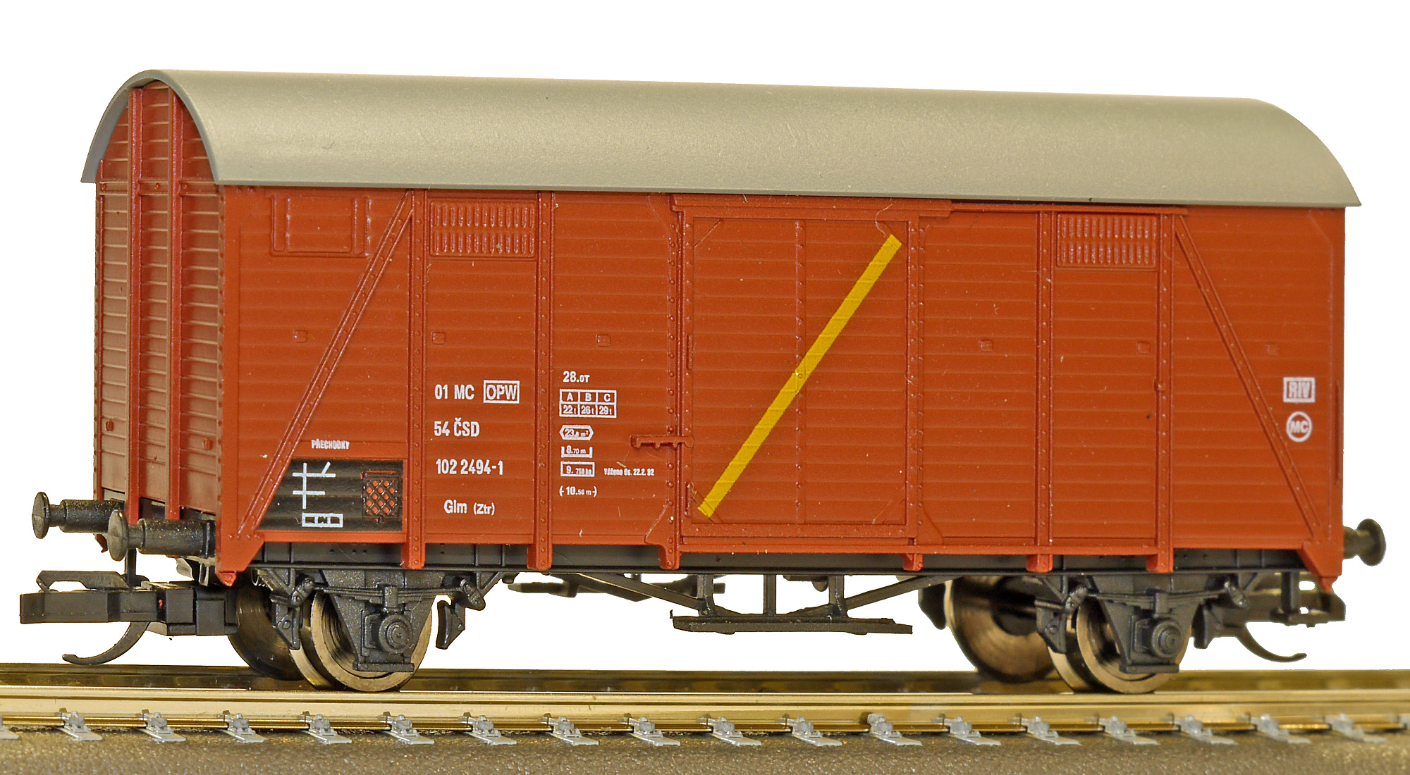 | • 01 54 102 2494-1 | → | nákladní, nezávislé nápravy, pevný rozchod, ve vlastnictví železniční správy, RIV, EUROP/IF |