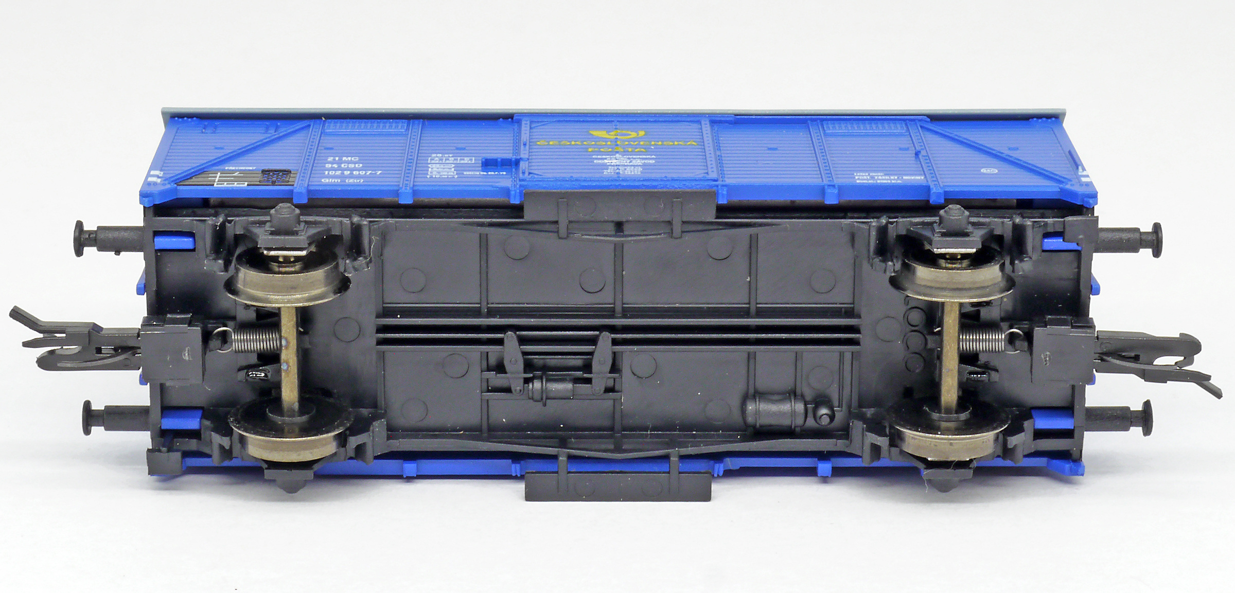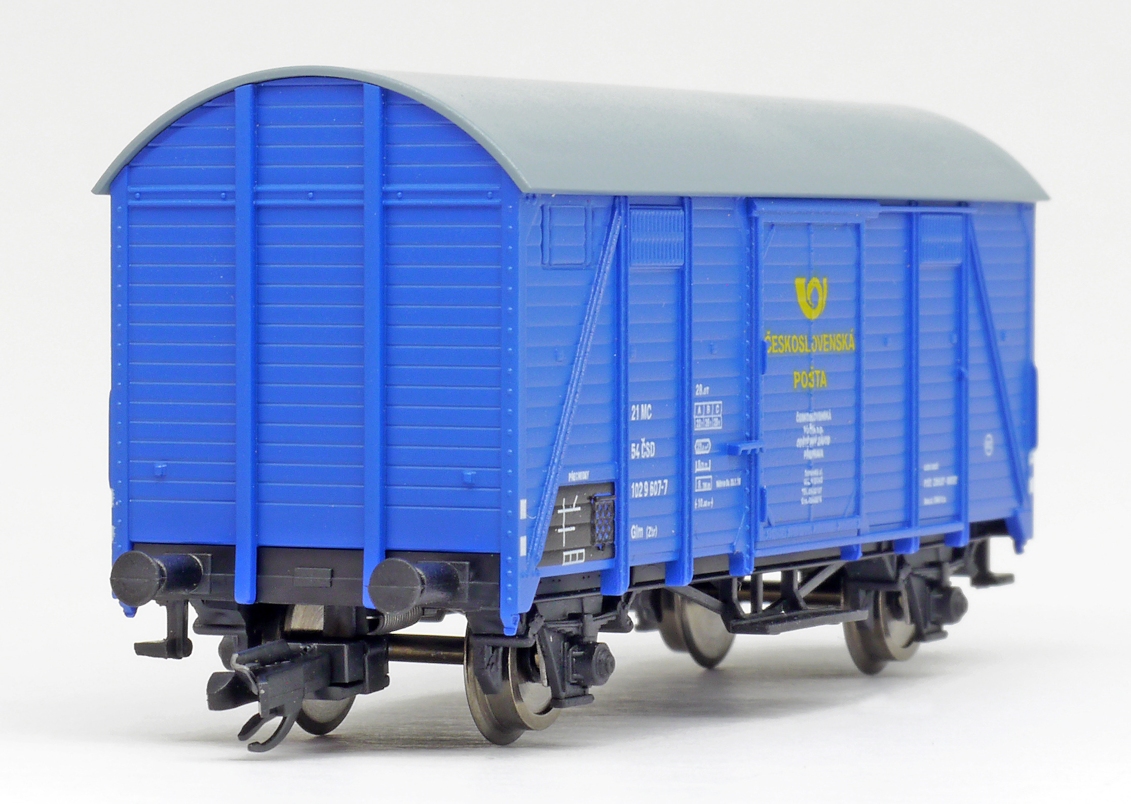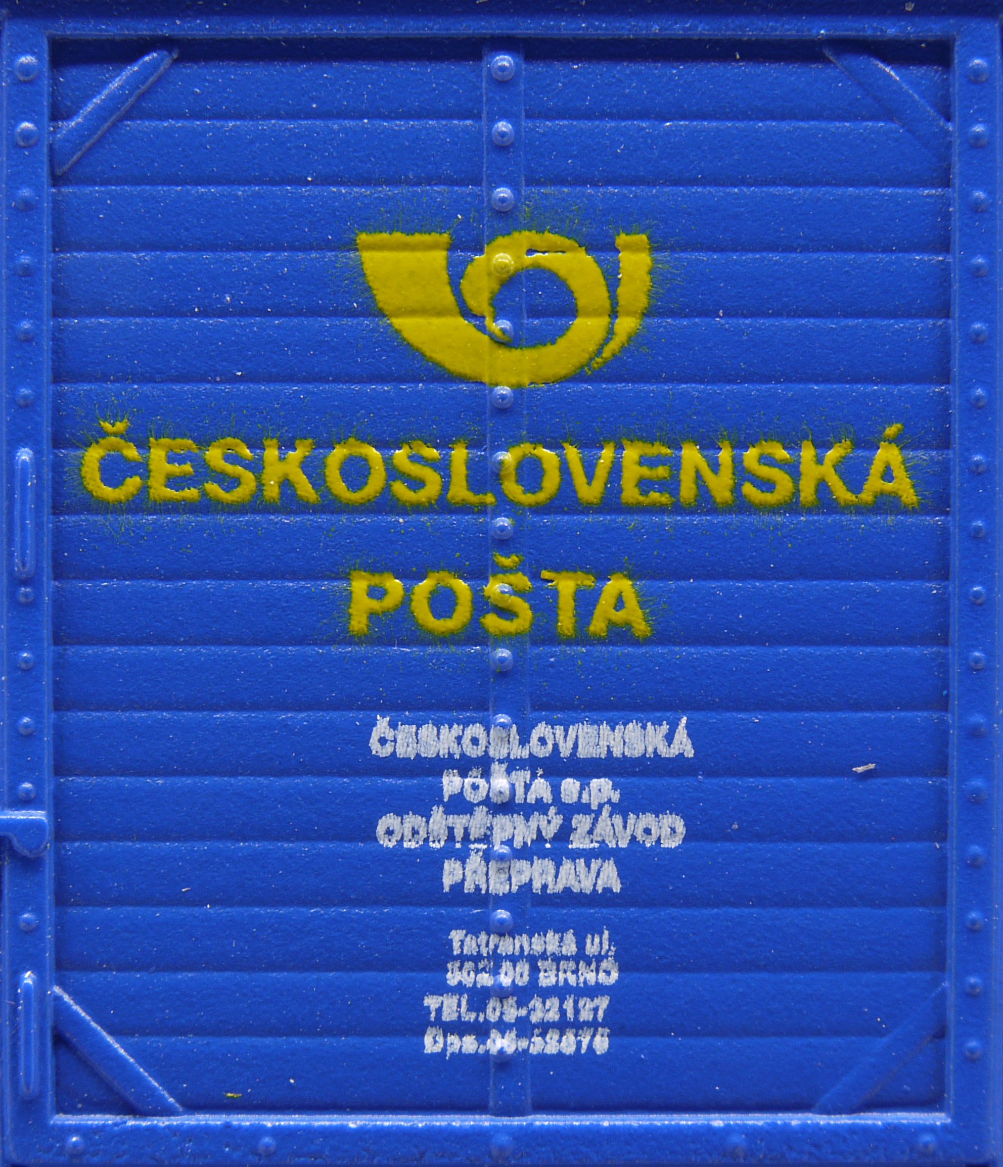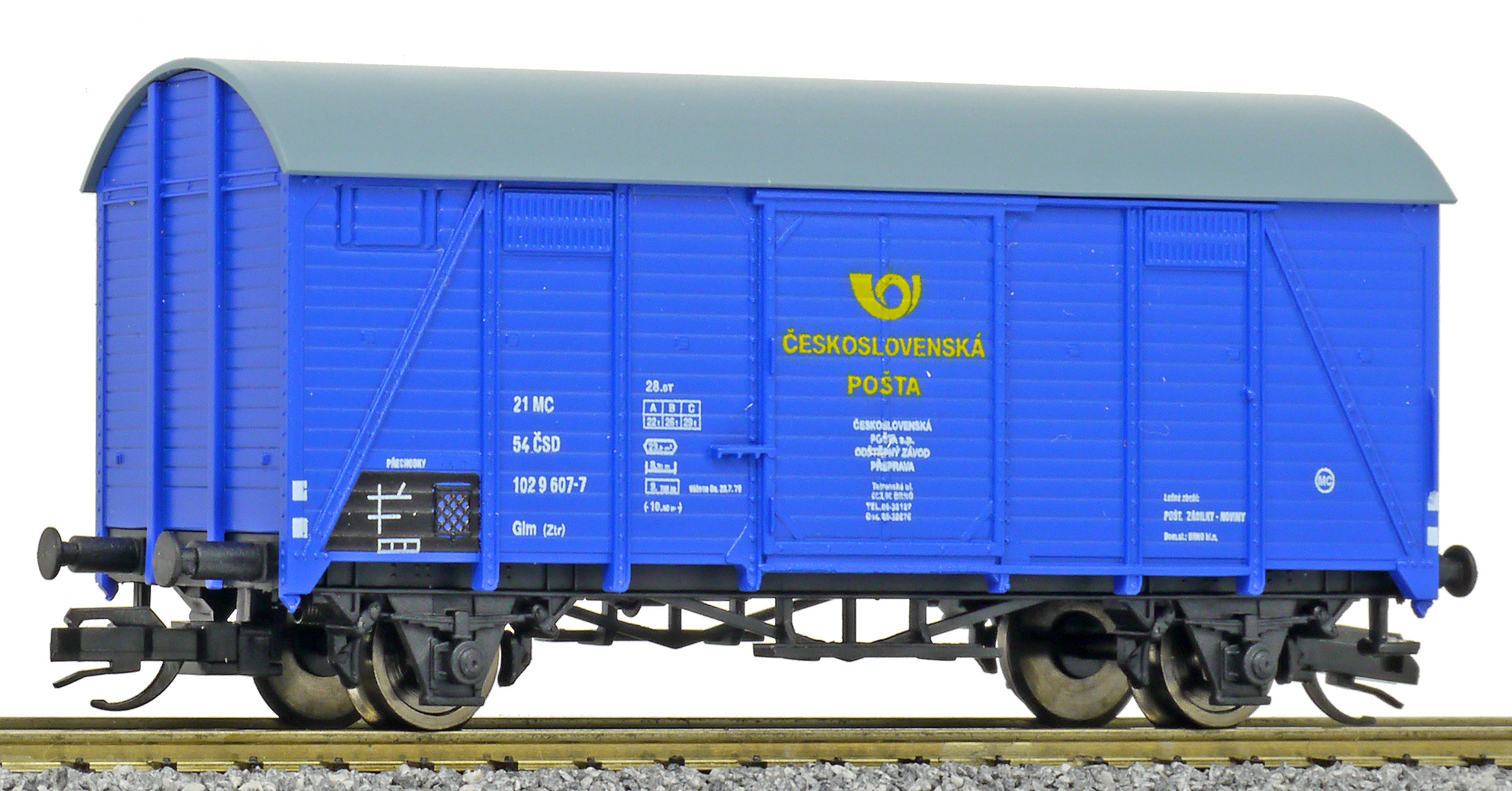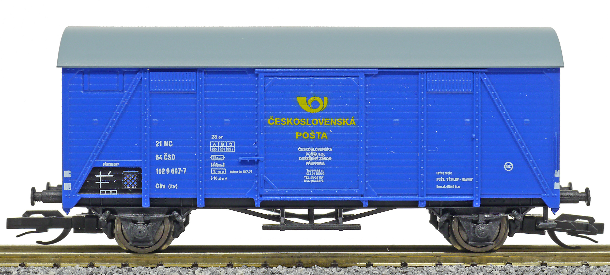| krytý nákladní vůz modrý s šedou střechou „Československá pošta - Brno” |