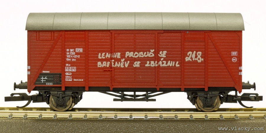 | krytý nákladní vůz červenohnědý s šedou střechou „1968 okupace ČSSR” |