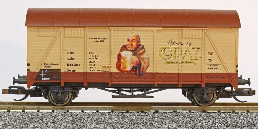 | • 21 54 102 8 435-4 | → | nákladní, nezávislé nápravy, pevný rozchod, ve vlastnictví železniční správy, RIV, PPV |