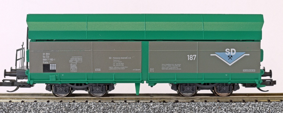 | nákladní samovýsypný vůz zelený-šedý, číslo vozu 187 |
