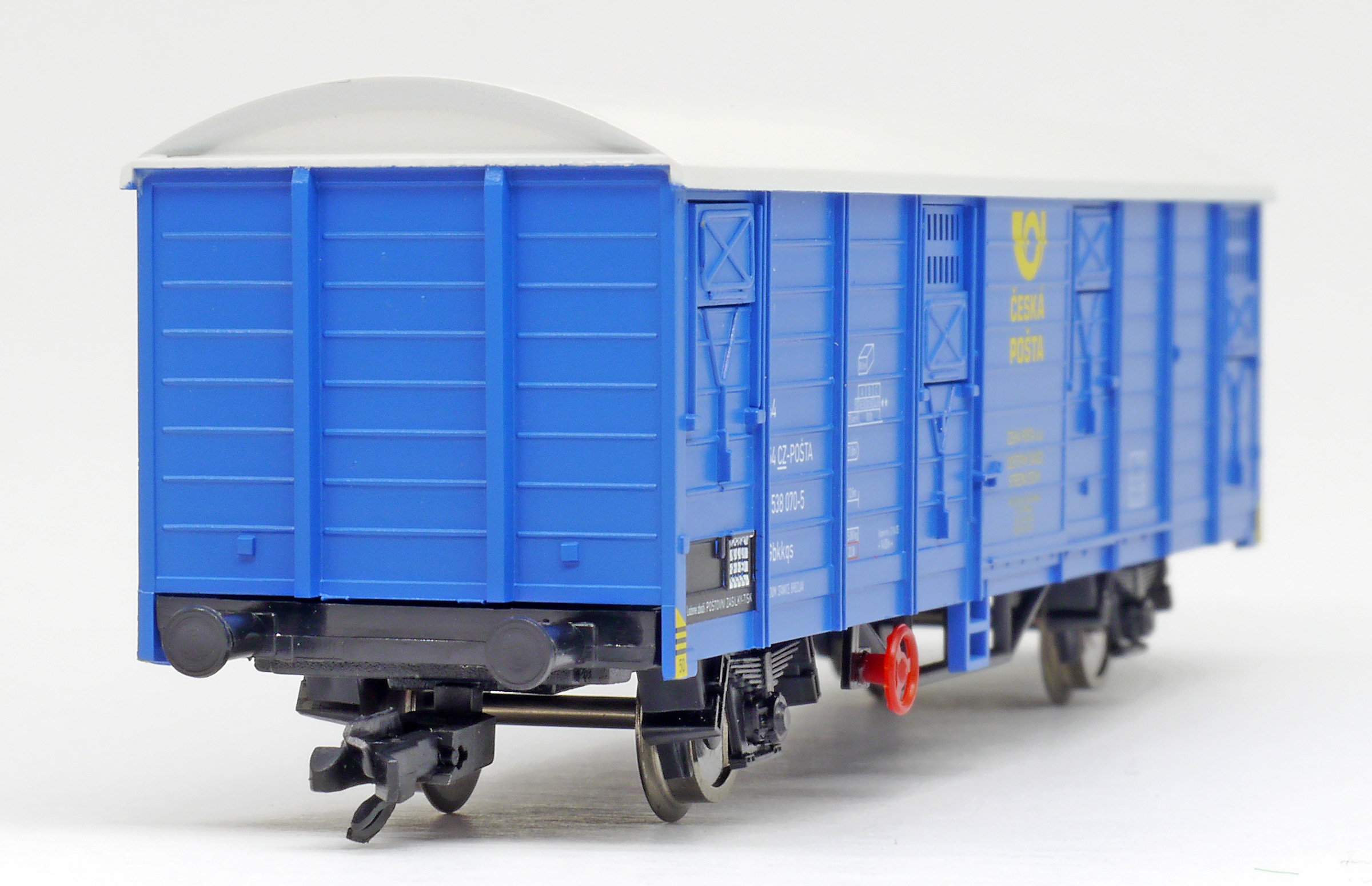 | krytý poštovní vůz modrý s šedou střechou „Česká pošta“ |