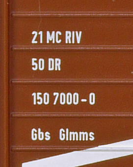 | • 21 50 150 7000-0 | → | nákladní, nezávislé nápravy, pevný rozchod, ve vlastnictví železniční správy, RIV, PPV |