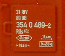 | • 31 80 354 0 489-2 | → | nákladní, s podvozky, pevný rozchod, ve vlastnictví železniční správy, RIV, PPV |