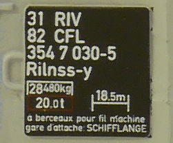 | • 31 82 354 7 030-5 | → | nákladní, s podvozky, pevný rozchod, ve vlastnictví železniční správy, RIV, PPV |