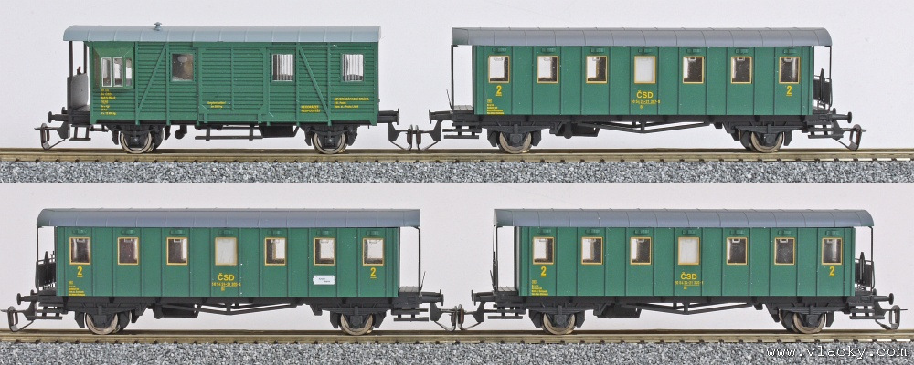 | set jednoho služebního vozu Ds a tří osobních vozů Bi |