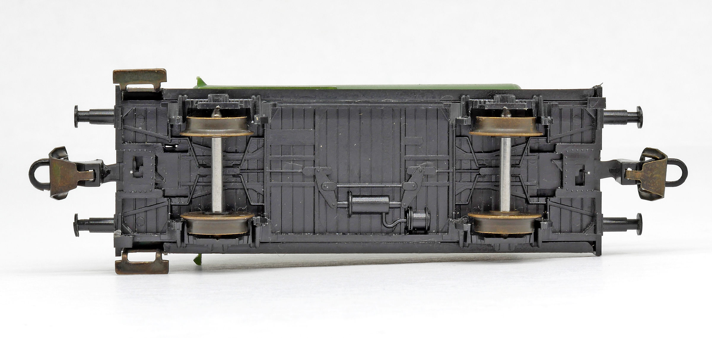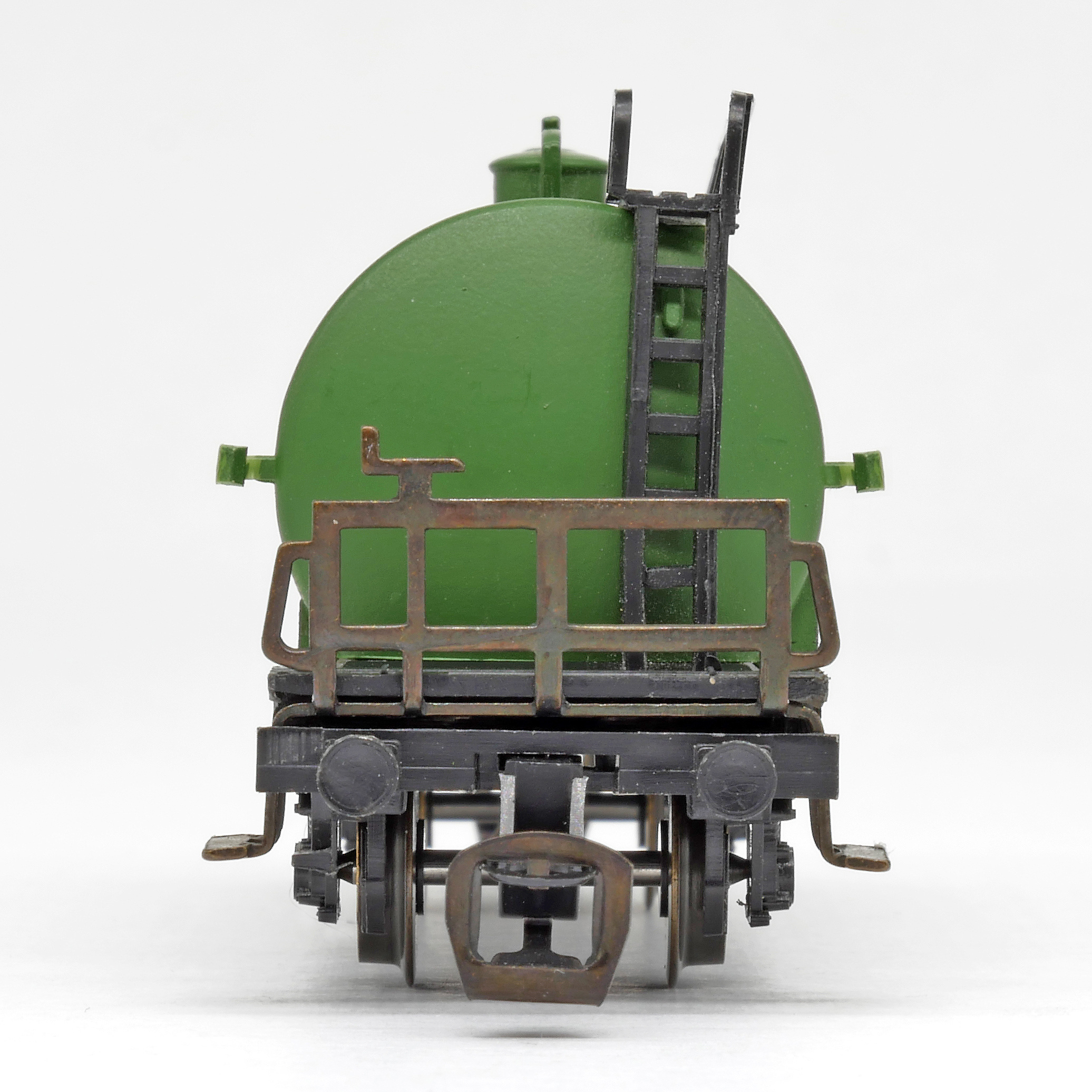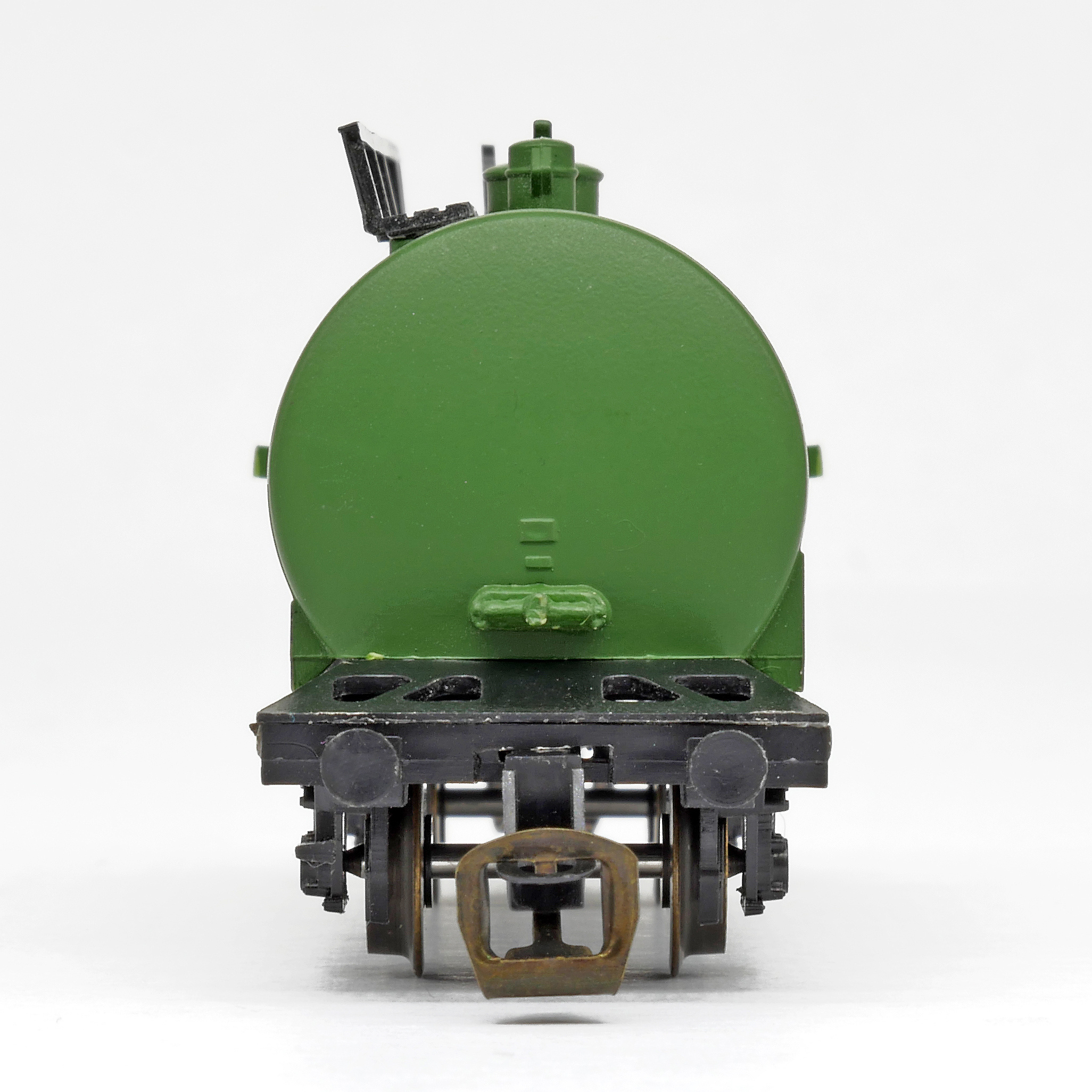 kotlový vůz zelený s černým pojezdem a s logem „BP“