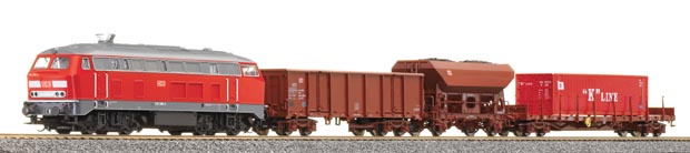 set dieselové lokomotivy BR 218 a tří nákladních vozů