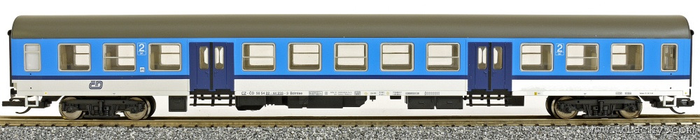 | rychlíkový vůz modrý-bílý s šedou střechou 2. tř. |