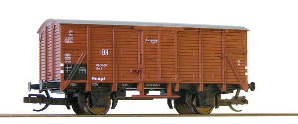 | krytý nákladní vůz červenohnědý s šedou střechou „Messegut“ |