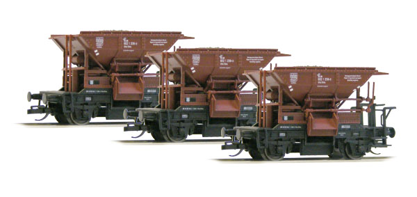 | set tří hnědých samovýsypných vozů typu Talbot s nákladem |