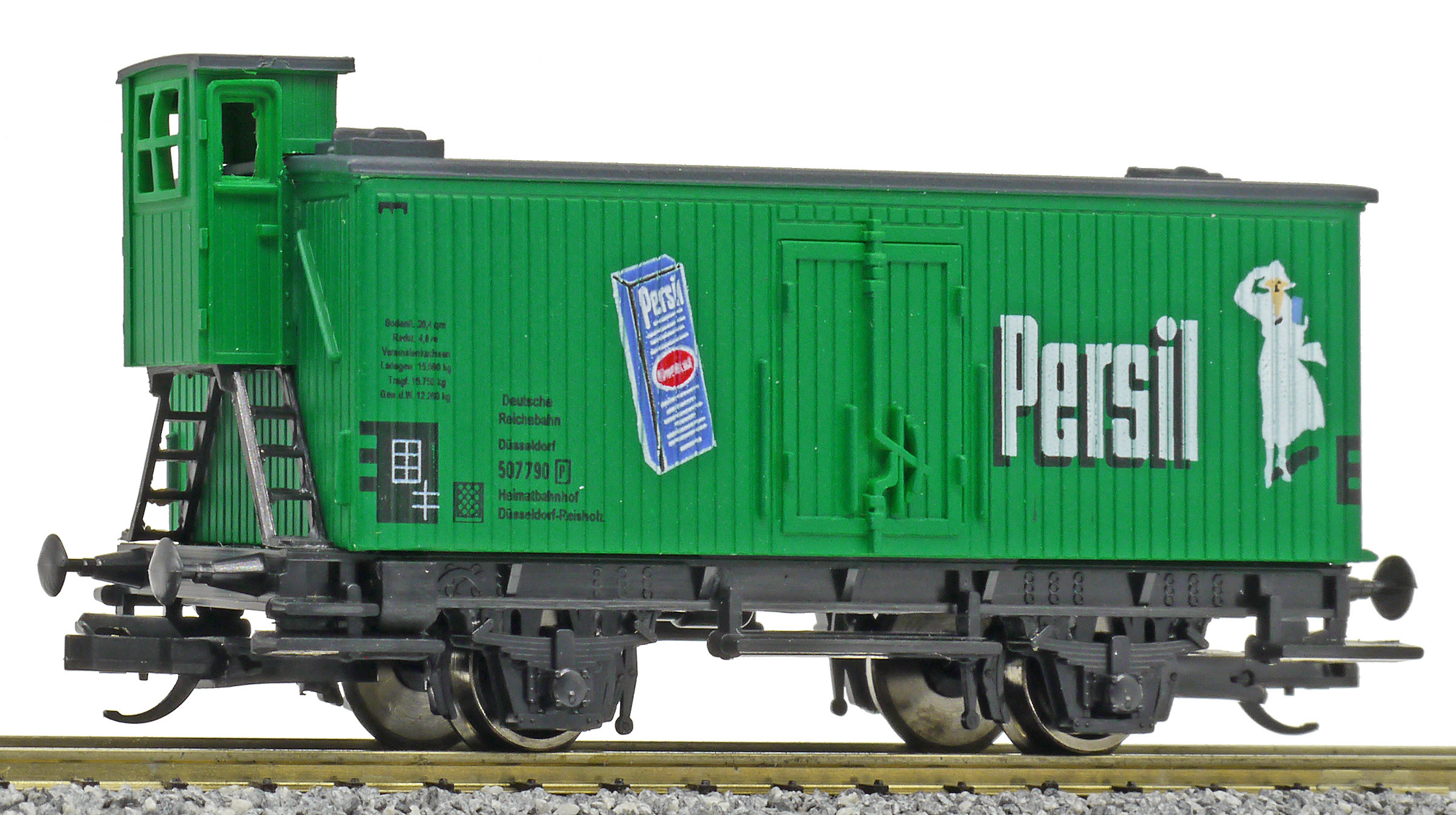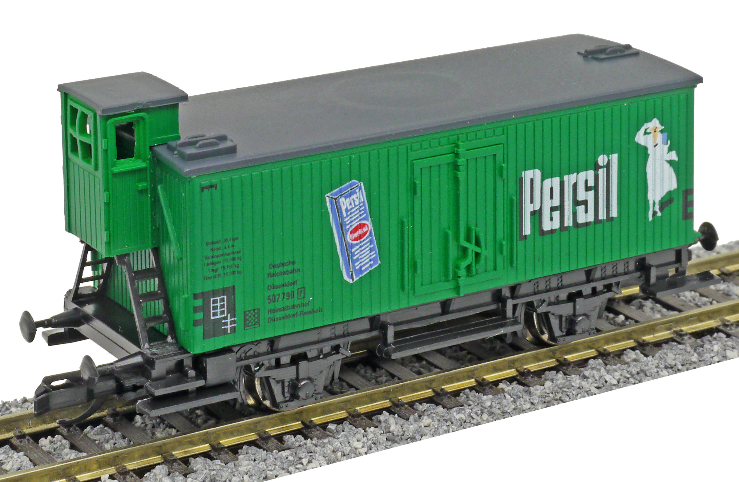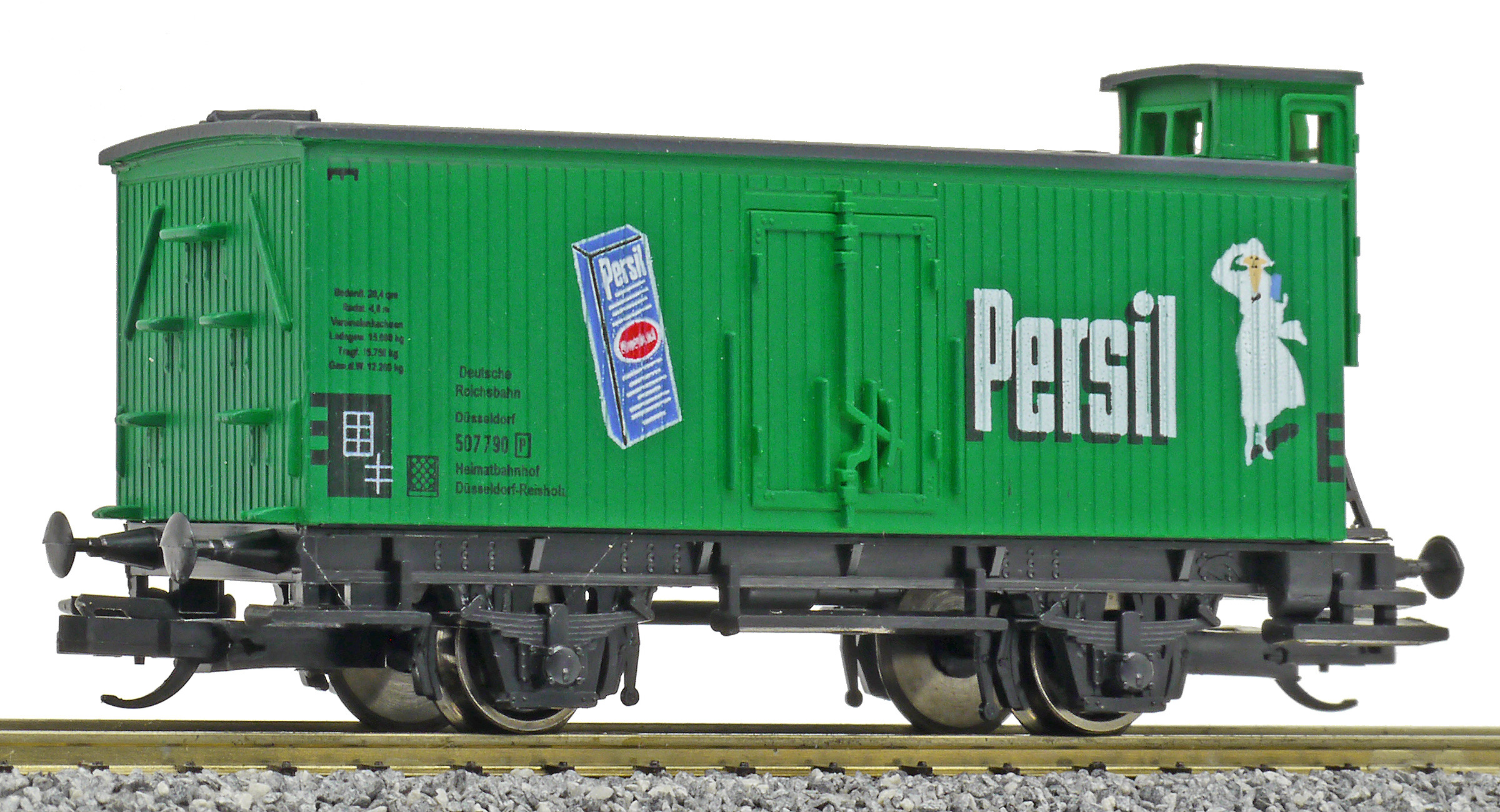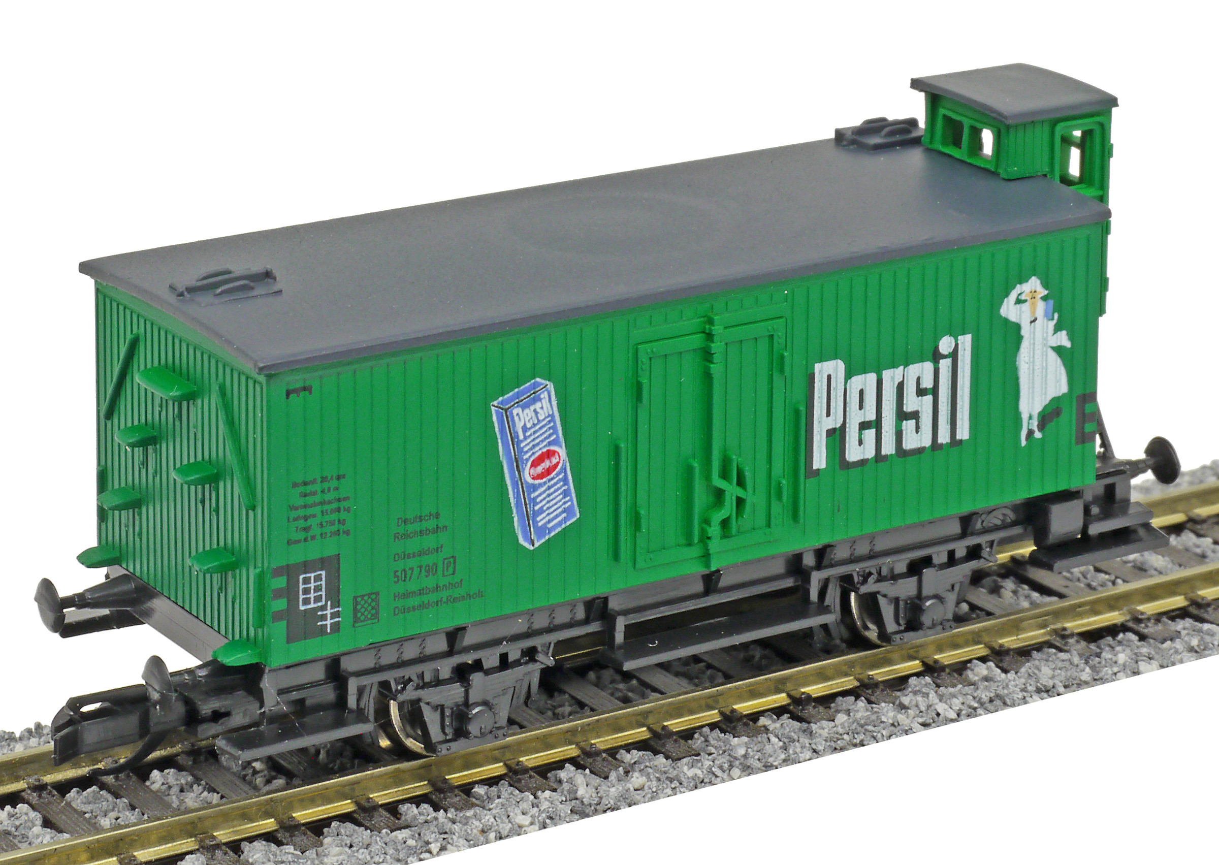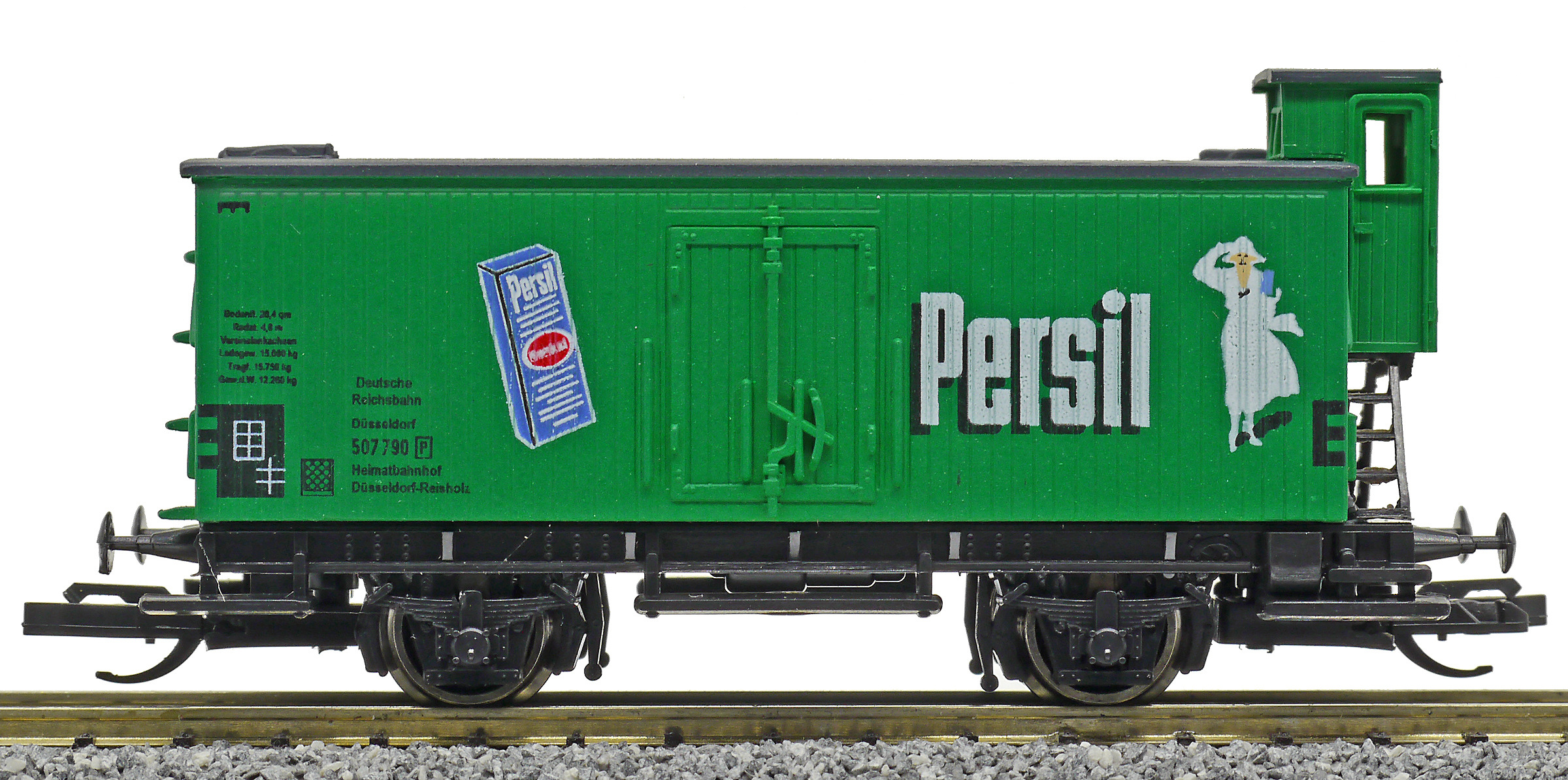 | nákladní vůz zelený s šedou střechou „Persil“ |