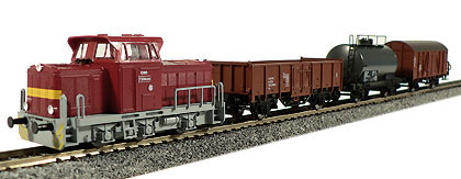 | set dieselové lokomotivy T 334 a tří nákladních vozů |