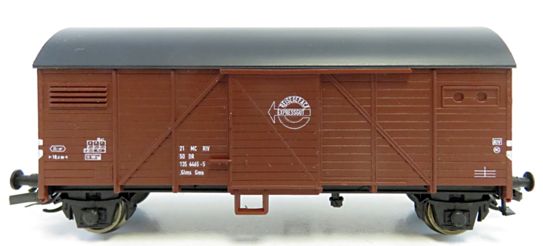 | krytý nákladní vůz červenohnědý s hnědou střechou „Expressgut“ |