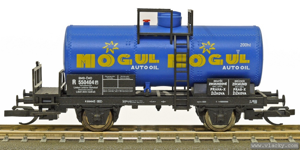 kotlový vůz modrý s černým pojezdem „MOGUL“
