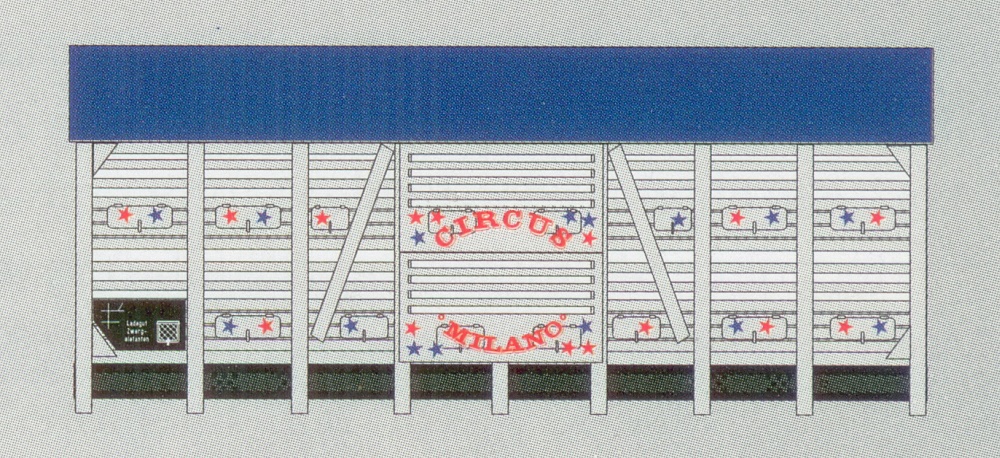| bílý s modrou střechou "CIRCUS MILANO" |