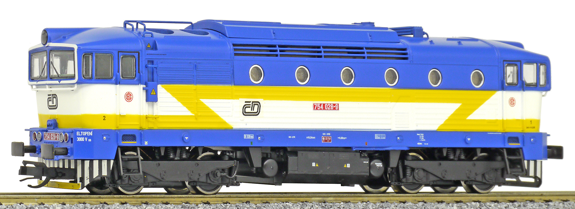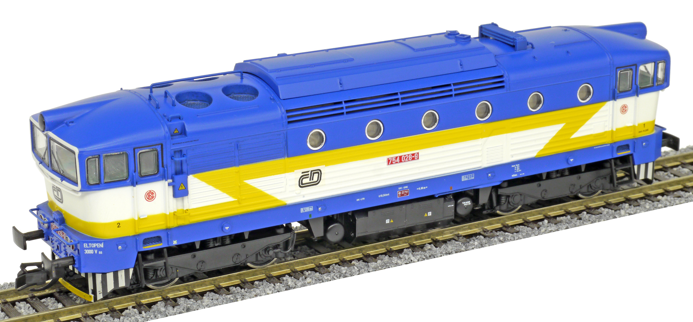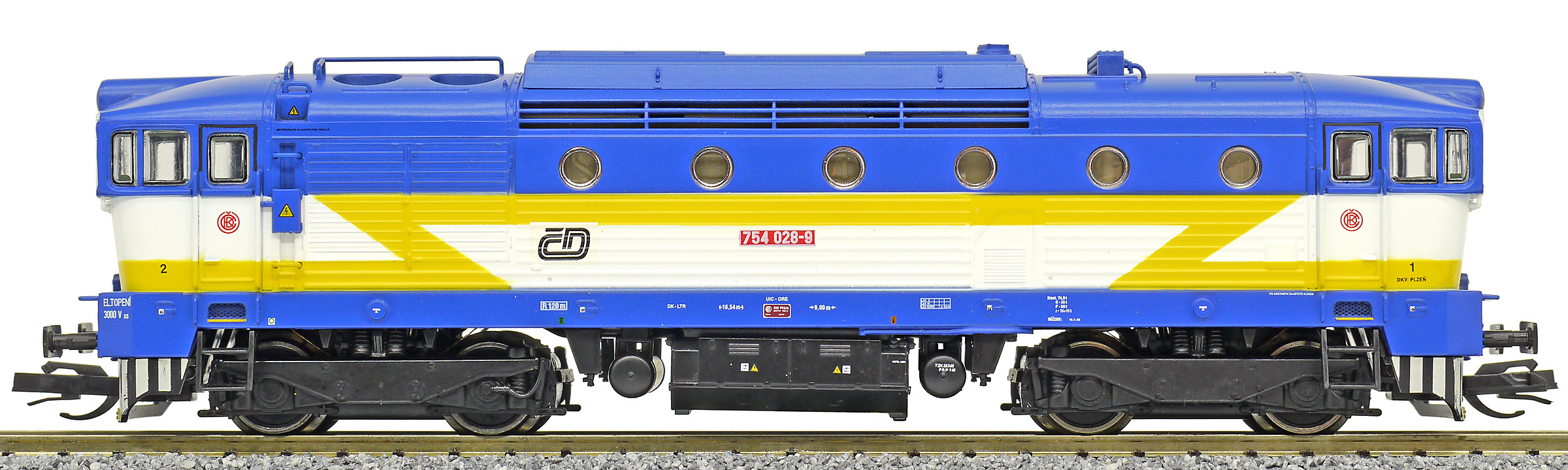 Popis   dieselová lokomotiva modrá-bílá s výstražným žlutým bleskem