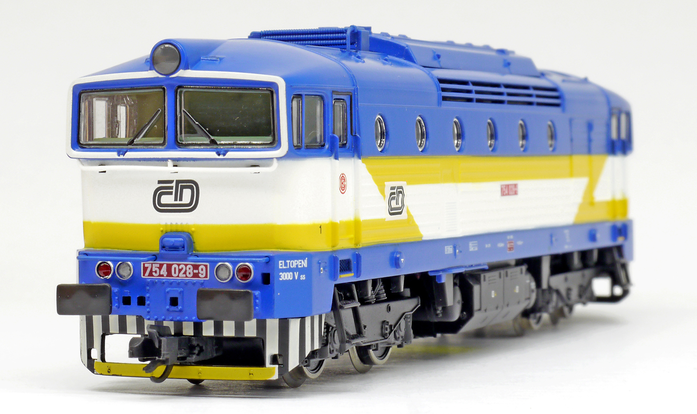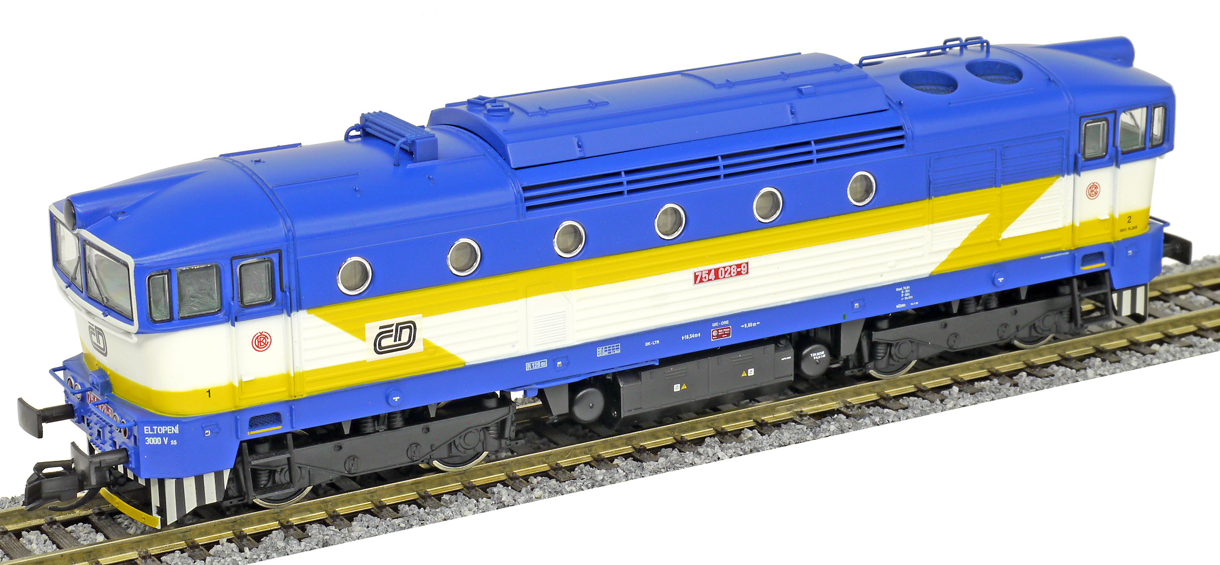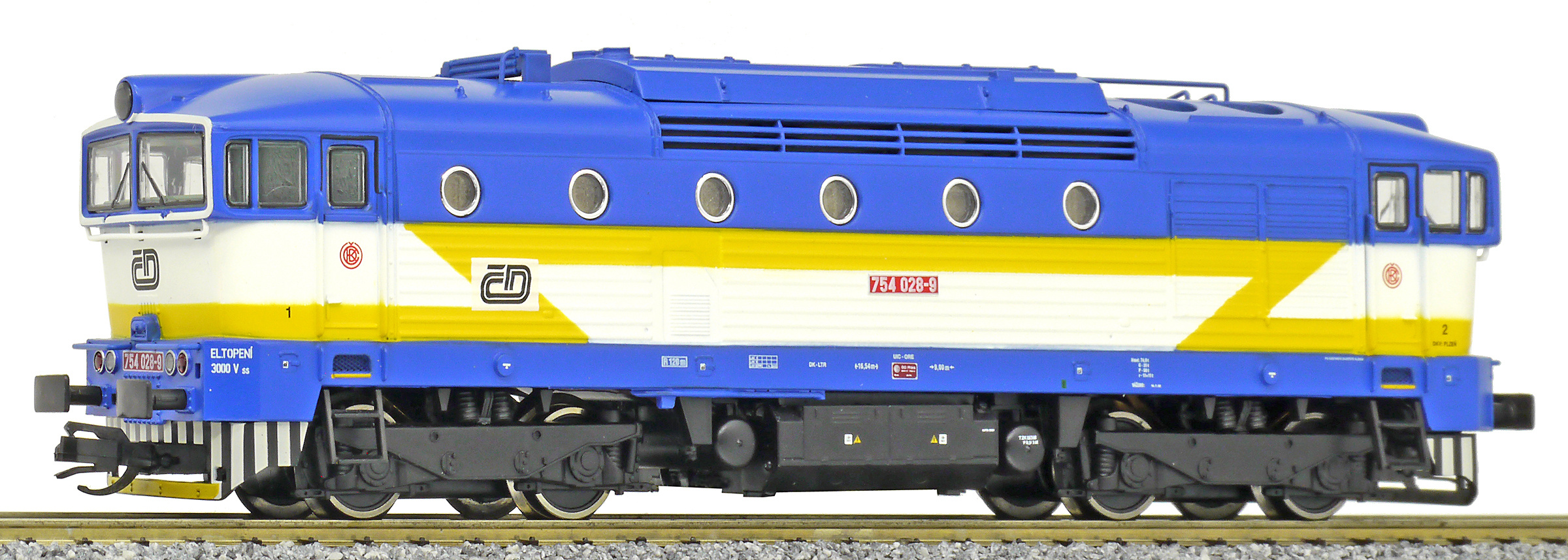 Popis   dieselová lokomotiva modrá-bílá s výstražným žlutým bleskem