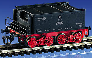černý s červeným pojezdem vůz na vodu, postaven z tendru P8