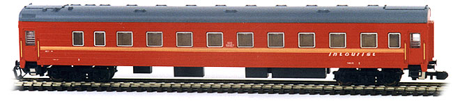 červený se žlutým pruhem a šedou střechou "Intourist"