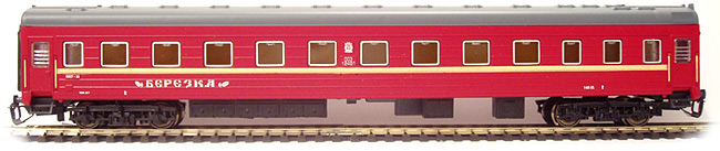 červený se žlutým pruhem a šedou střechou "Berjoska"