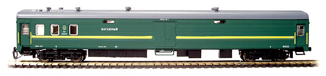 zelený se žlutým pruhem a šedou střechou, zavazadlový
