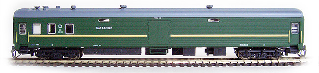 zelený se žlutým pruhem a šedou střechou, zavazadlový