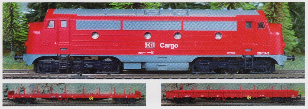 | set dieselové lokomotivy Nohab, plošinového a nízkostěnného vozu |