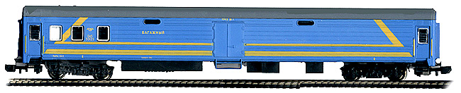 modrý se dvěma žlutými pruhy a šedou střechou, zavazadlový
