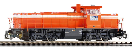 Popis   červená s bílým pruhem a tmavěšedým pojezdem "RAG" (Ruhrkohle AG)