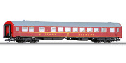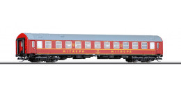 | lůžkový vůz červený s šedou střechou „MITROPA“ |