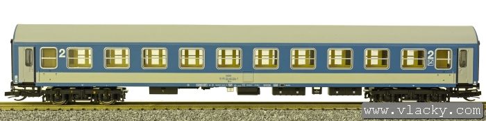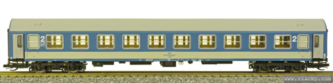 | rychlíkový vůz modrý se světle šedým pásem 2. tř. |