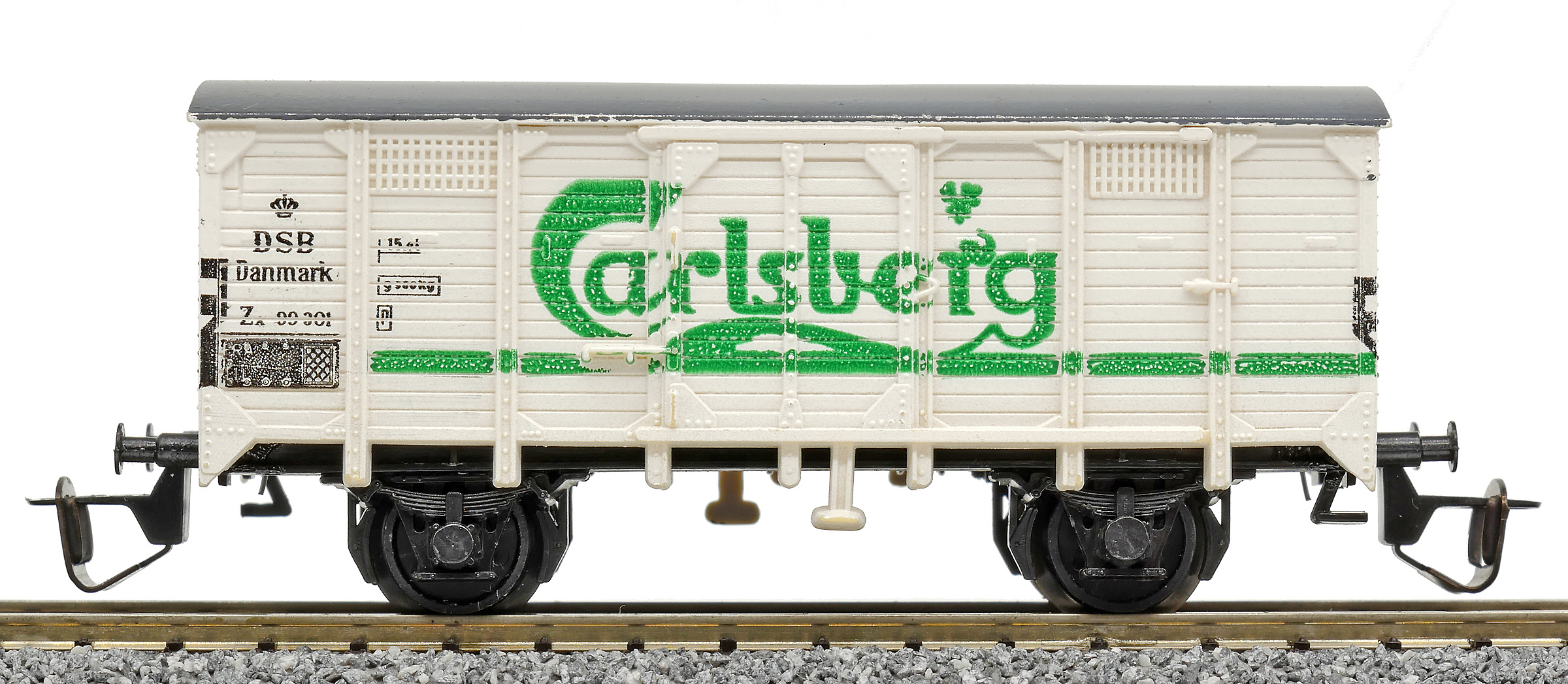 krytý nákladní vůz bílý s šedou střechou „Carlsberg“