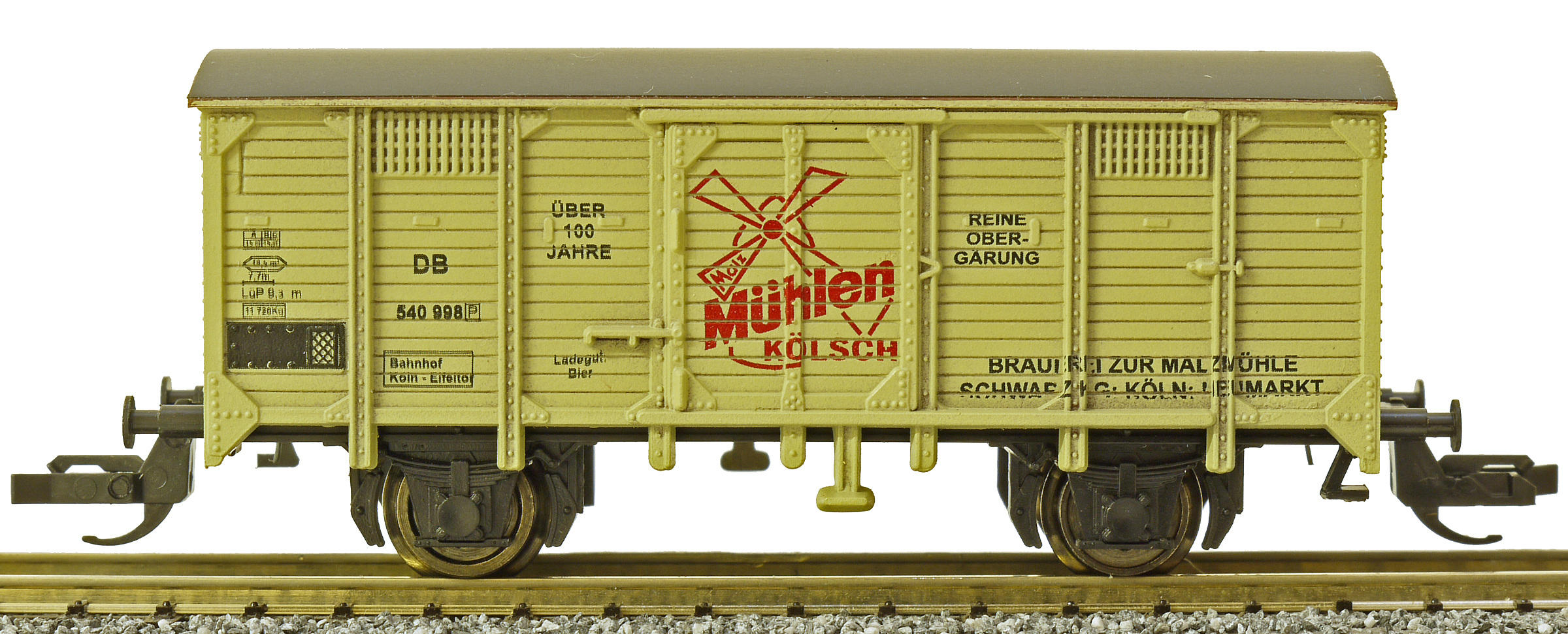 | krytý nákladní vůz krémový s šedou střechou „Mühlen Kölsch“ |