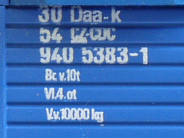 | • 30 54 940 5383-1 | → | vnitrostátní doprava, služební vůz pro nákladní vlaky |