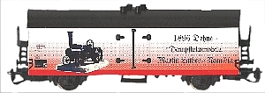 bílý s černou střechou a parní lokomobilou