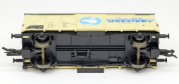 | krytý nákladní vůz krémový s šedou střechou „Mrazírny“, logo medvěd |