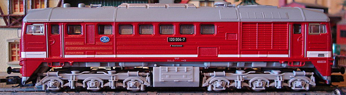měřítko 1:120 - rozchod kolejí 12 mm osvětlení - 3 reflektory přepínatelné podle směru jízdy nenormované uchycení spřáhla 147 mm - celková délka modelu přes nárazníky 6 - celkový počet náprav nebo rozložení náprav