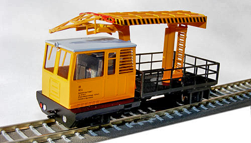 | pracovní drezína s jeřábovým ramenem, žlutá |